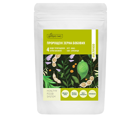 Поєднання пророщених зерен маша, нуту, сочевиці та сої забезпечує щоденне повноцінне харчування з підвищеним вмістом білка.